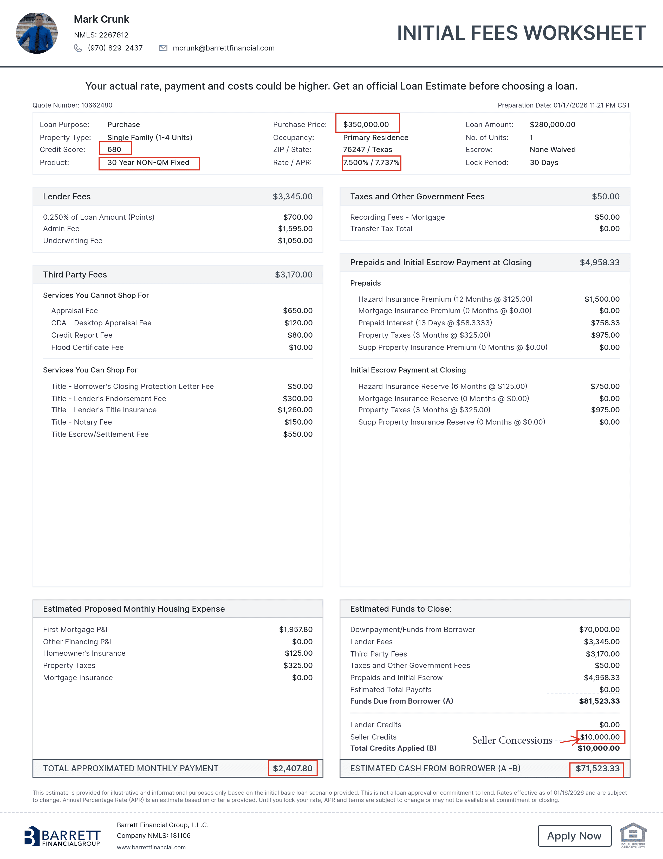 Based Upon A Credit Score Of 680 And Interest Rates As Of 1/16/26
