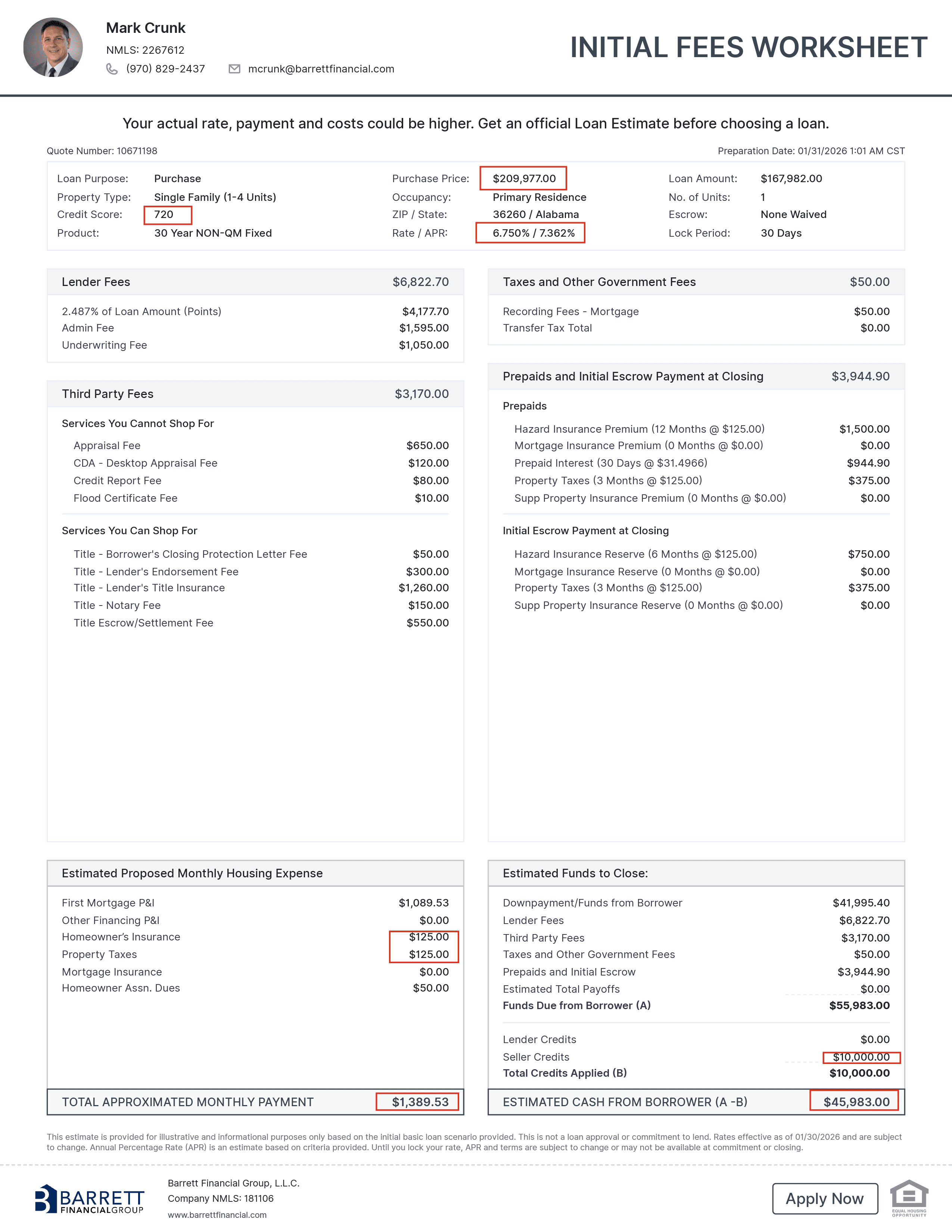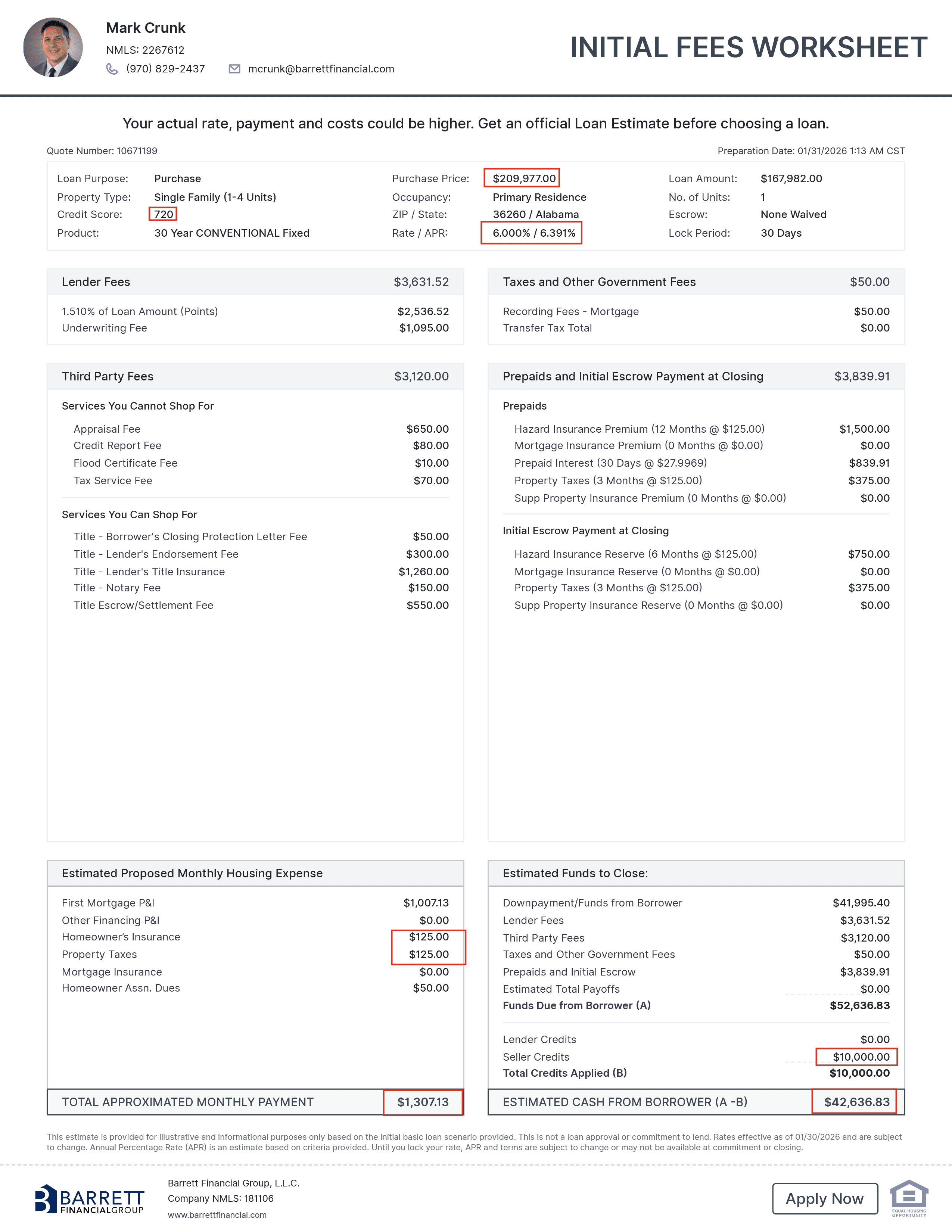 Based Upon A Credit Score Of 720 And Interest Rates As Of 1/30/26